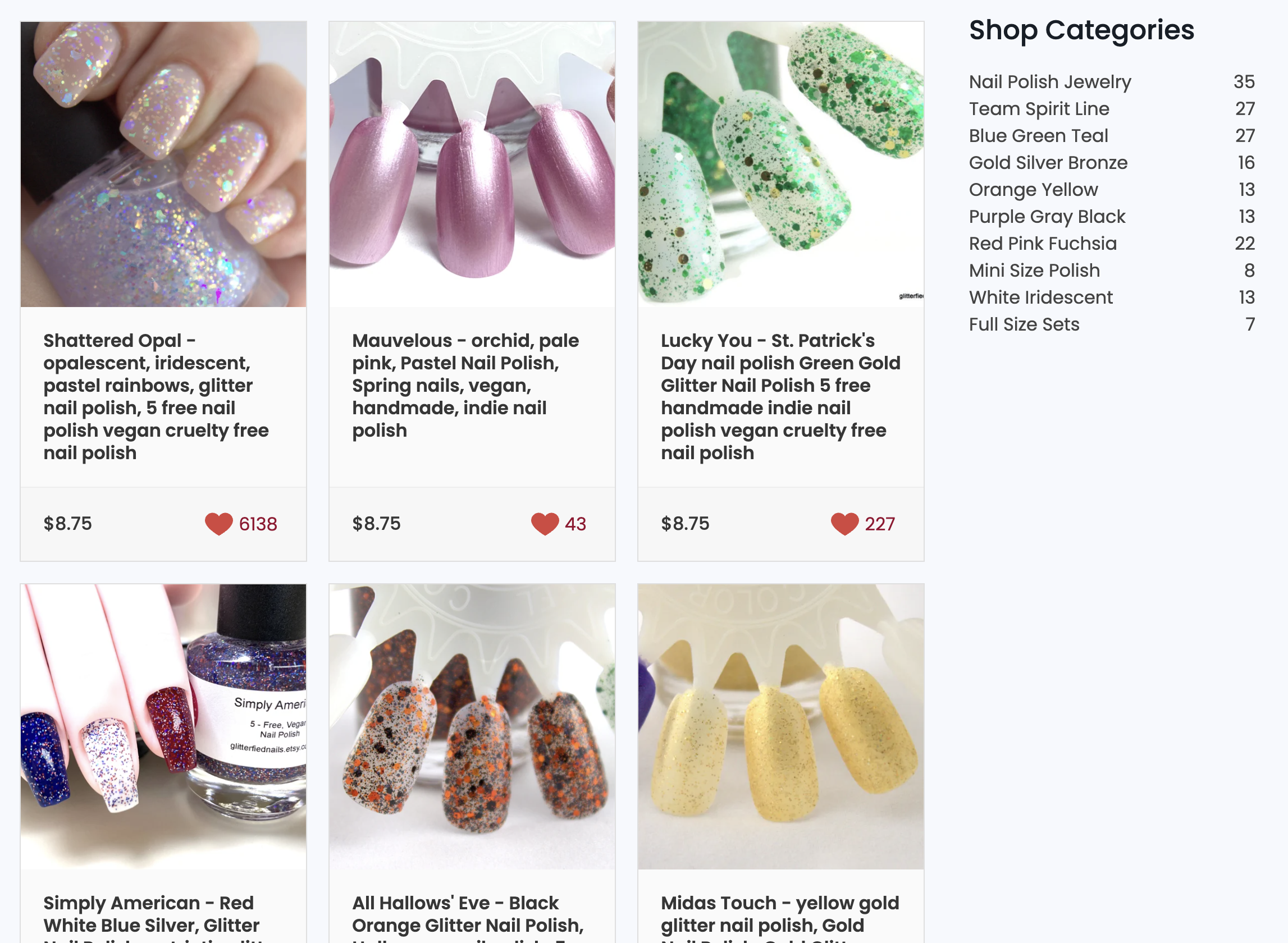 Main Etsy Shop Listings