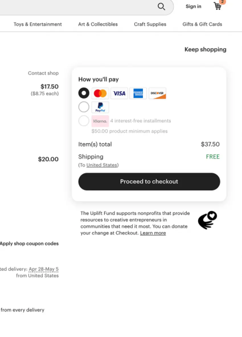 Checkout On Etsy